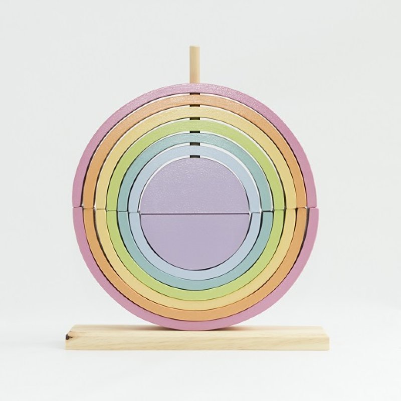 Su madera, imperfecta y natural, les da información sensorial muy valiosa. Sus piezas les ayudan a diferenciar formas y colores. Manipulándolo ganan destreza y coordinación. A través de él van comprendiendo conceptos complejos como el equilibrio, la simetría y la resistencia. Les abre la puerta de par en par al juego simbólico, a construir escenarios e imitar situaciones de la vida real.